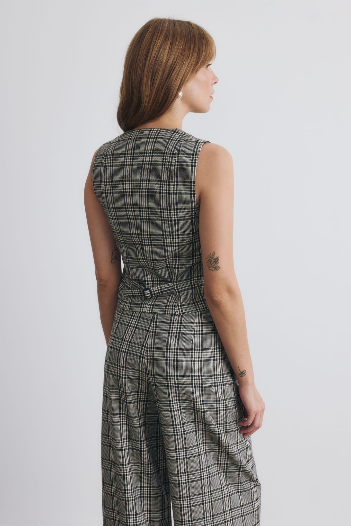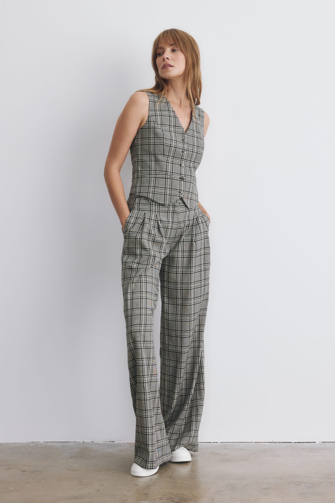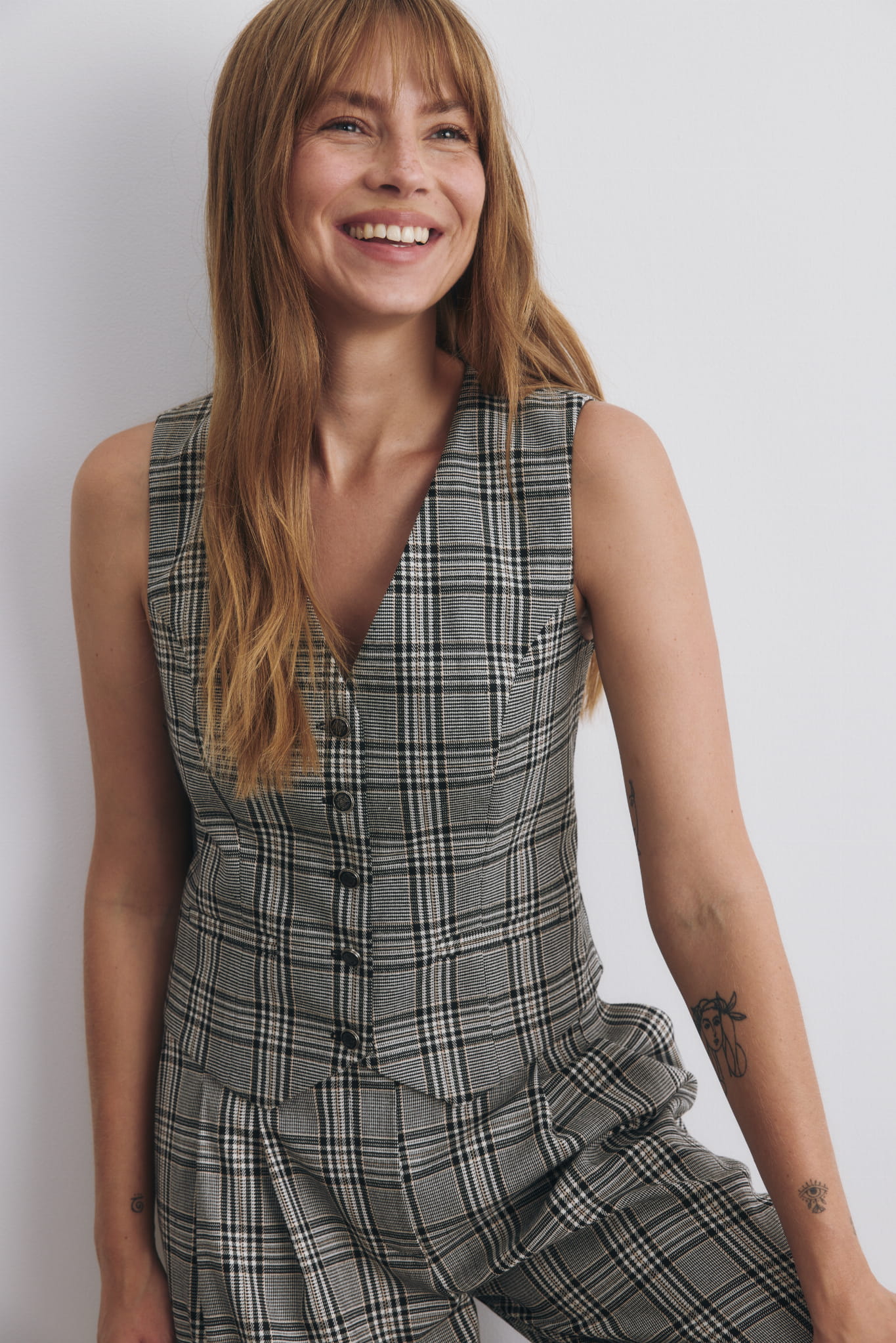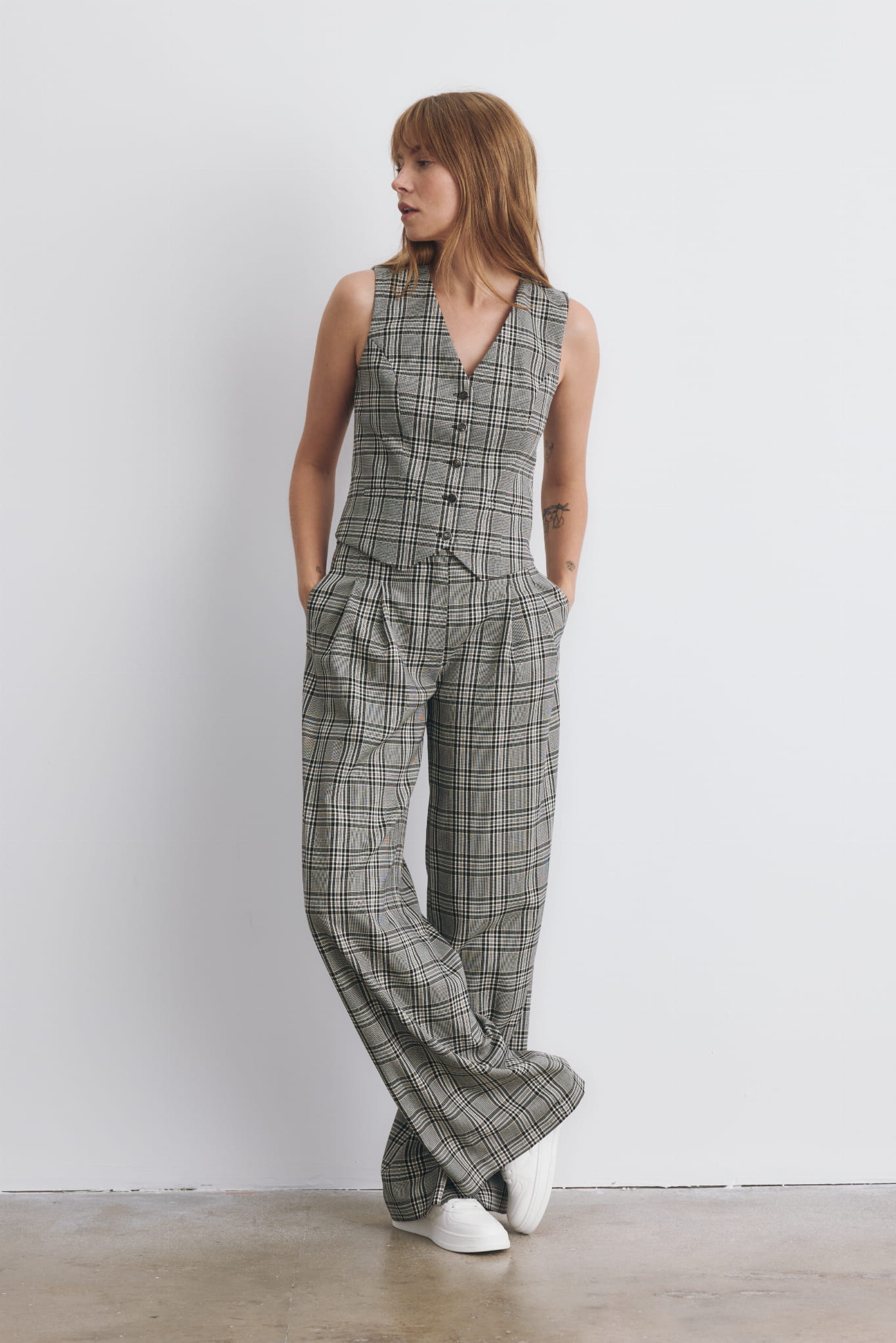 Tej zimy zaglądamy do szaf dziadków, ojców i ukochanych. W różnych wariacjach stylistycznych nasza czarna, klasyczna kamizelka w męskim stylu podbije serce każdej miłośniczki stylu hippie, vintage, boho, jak i tej kochającej nowoczesną klasykę. Zjawiskowo wygląda połączona z białą koszulą, t-shirtem, golfem i apaszką związaną w fular. Zapięta na ostatni guzik lub rozchodząca się w okolicy ramion pięknie podkreśla kobiecą sylwetkę. Kamizelka z naszymi szerokimi spodniami Helen tworzą piękny, modowy komplet.