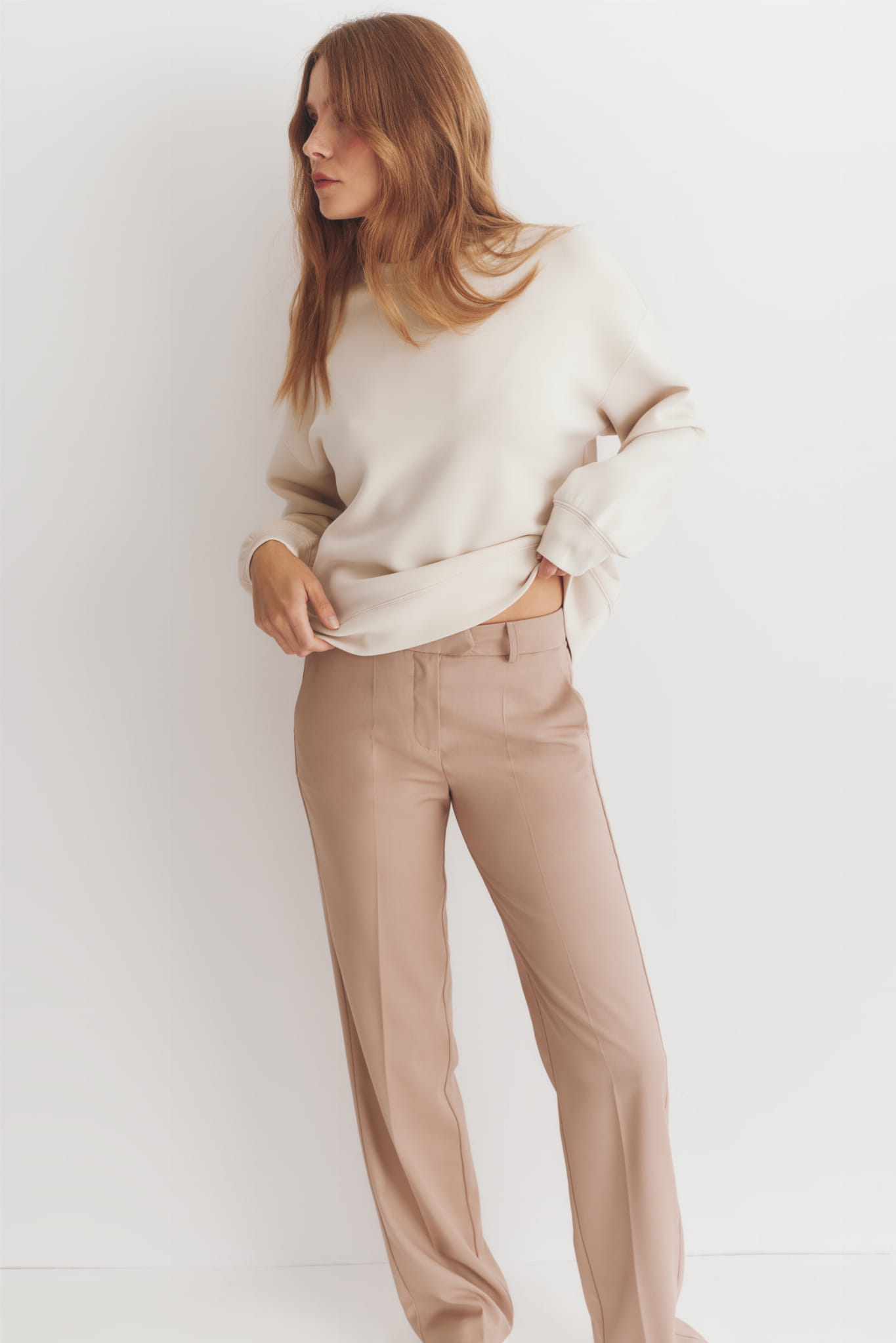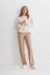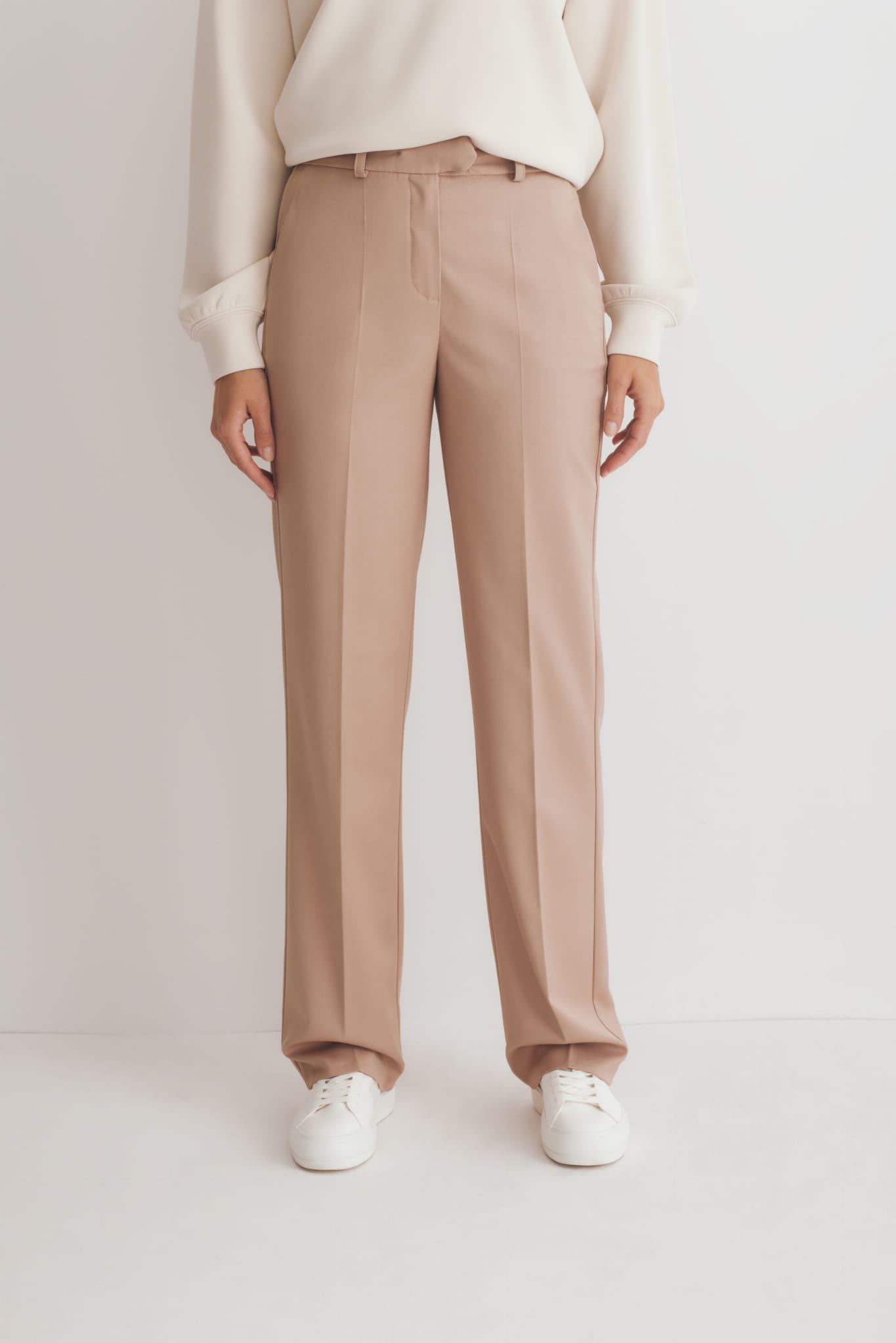 Klasyczne, proste spodnie w kant. Z marynarką tworzą modowy garnitur, doskonałe są również do koszul, eleganckich bluzek, a także jesiennych swetrów. W stylizacji z t-shirtem, bluzą i butami typu sneakersy nabierają codziennego, sportowego charakteru.