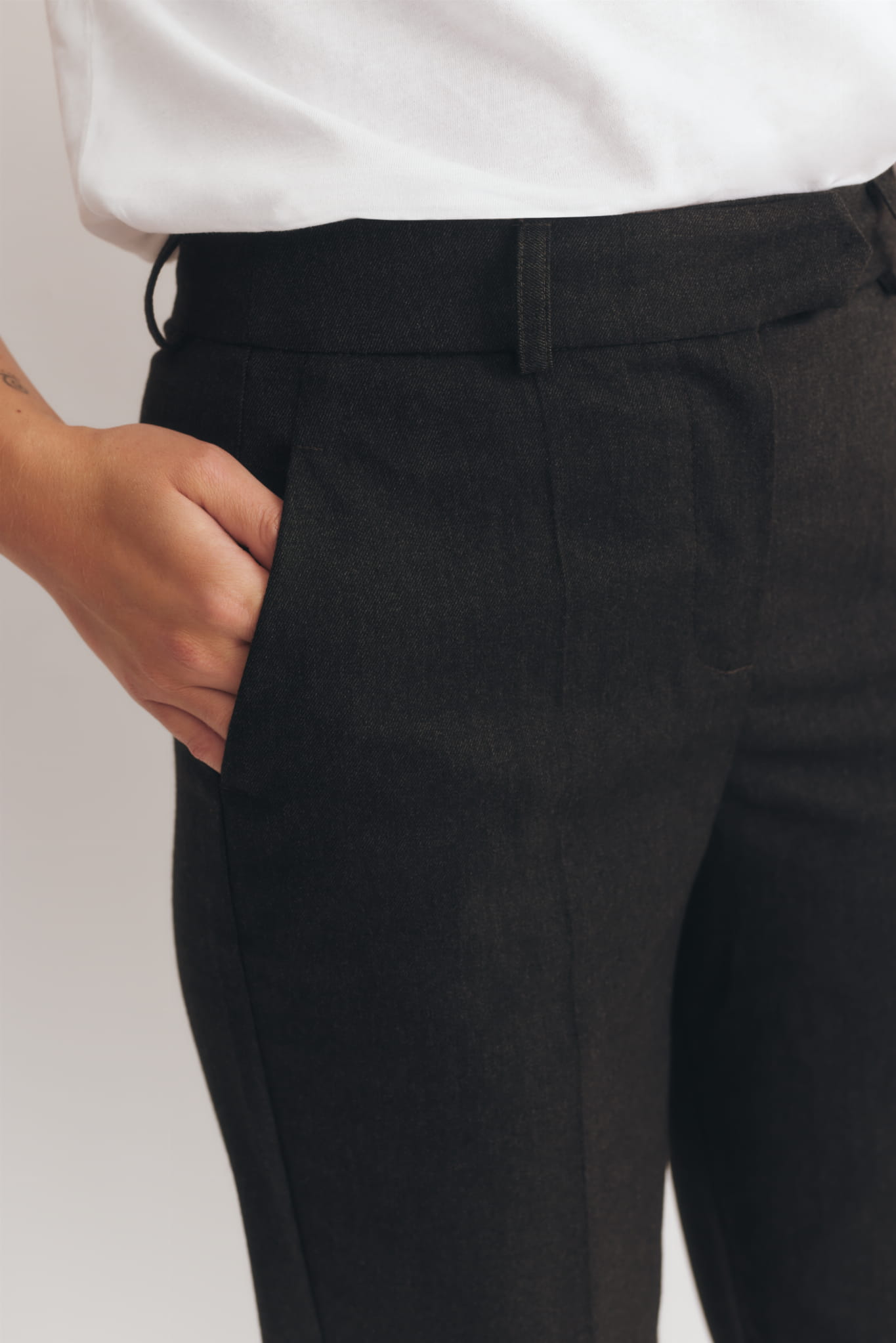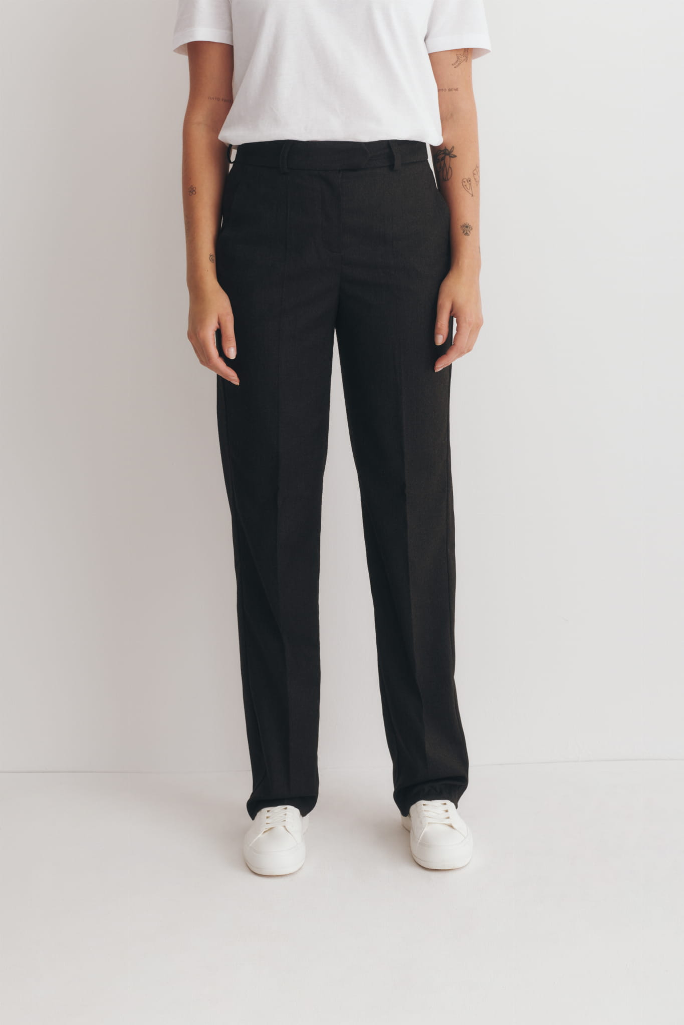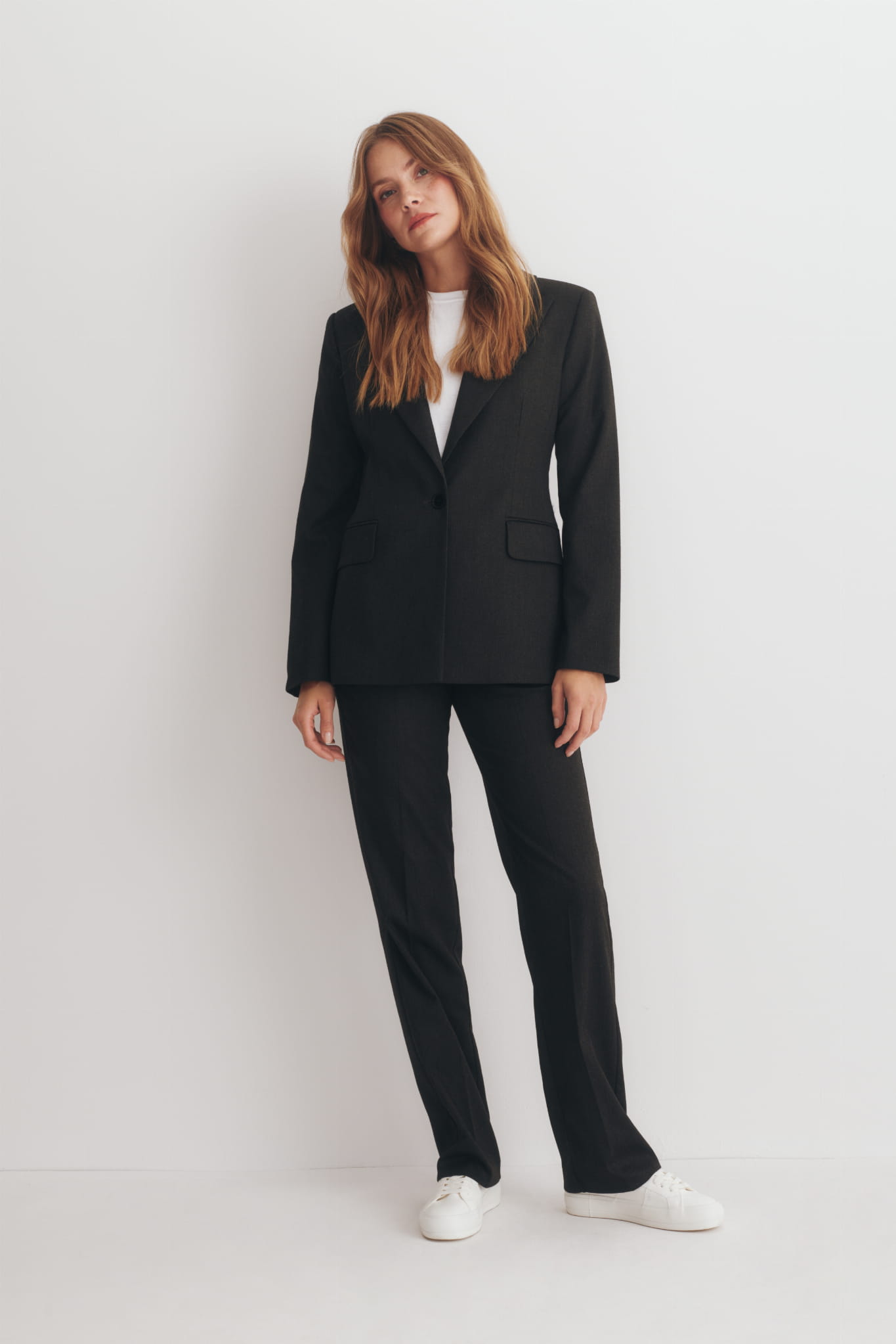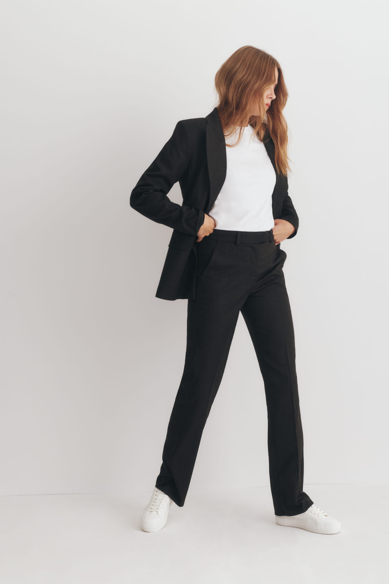 Klasyczne, proste spodnie w kant. Z marynarką tworzą modowy garnitur, doskonałe są również do koszul, eleganckich bluzek, a także jesiennych swetrów. W stylizacji z t-shirtem, bluzą i butami typu sneakersy nabierają codziennego, sportowego charakteru.