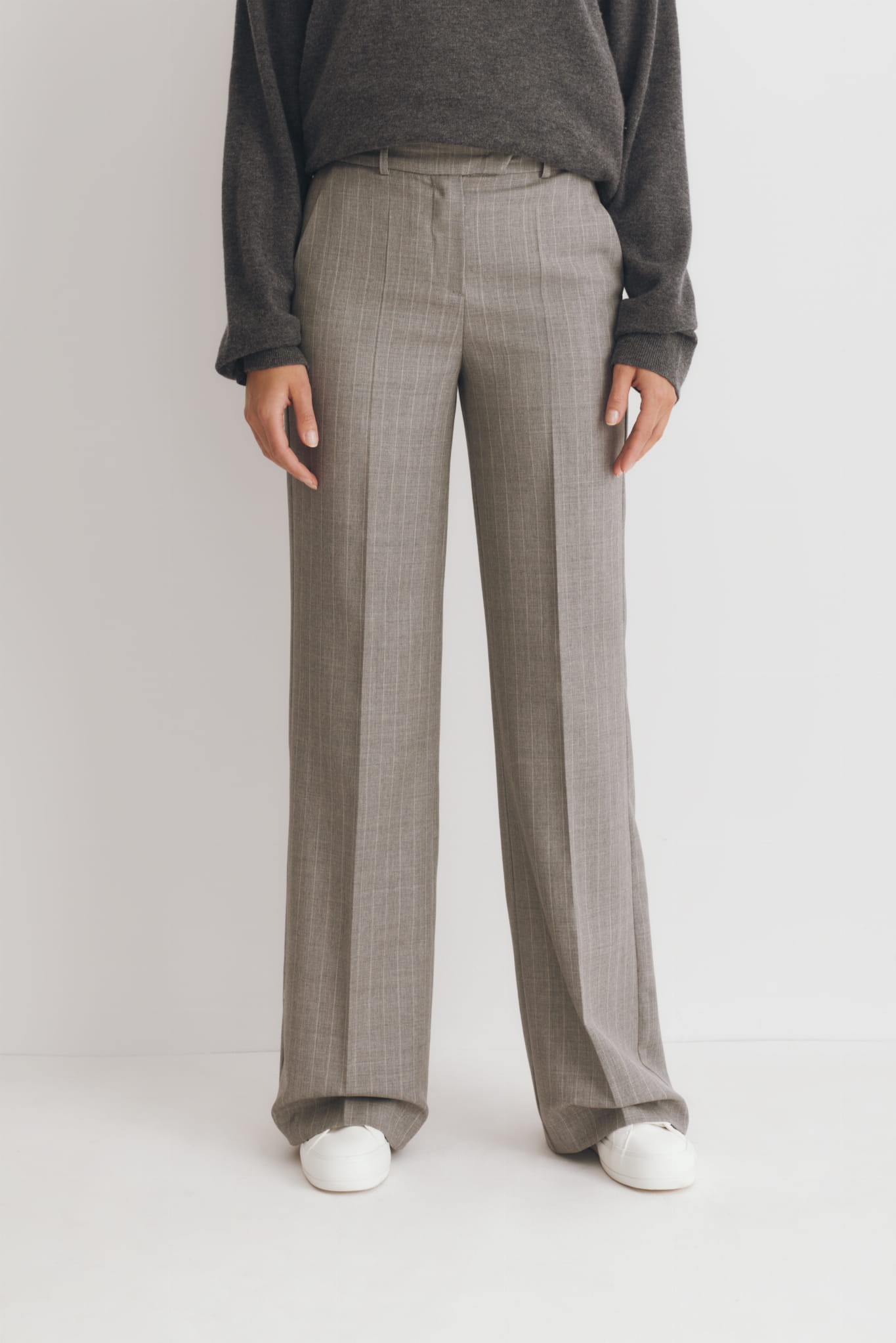 Klasyczne, rozszerzane spodnie w kant Olivia. Powstały one na bazie naszych bestsellerowych spodni Caterine.