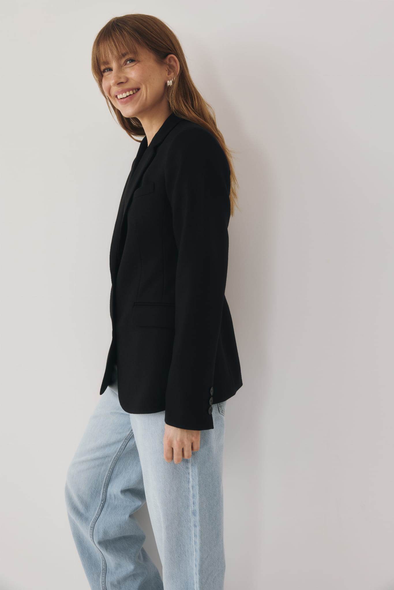 Piękna, klasyczna marynarka, która pasuje do spódnic, spodni, jeansów. Możesz nosić ją zarówno do klasycznych, eleganckich stylizacji, jak i luźniejszych, bardziej nieformalnych.